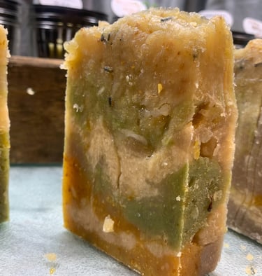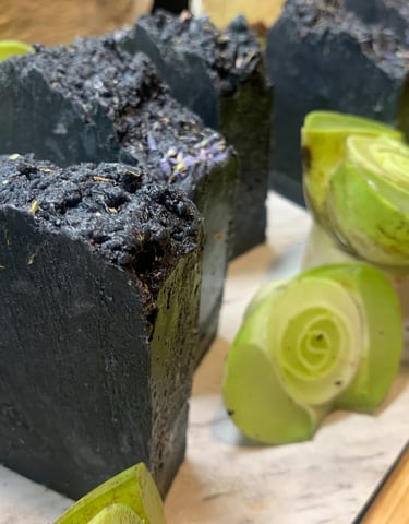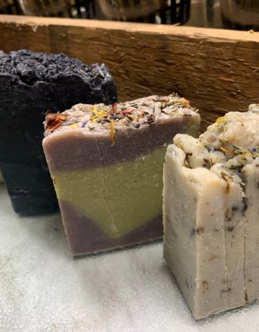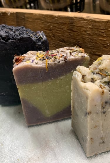 Our small-batch soaps are crafted with essential oils, rich clays, and botanicals — little works of love designed to nourish your skin, lift your spirit, and bring simple joy to every wash.